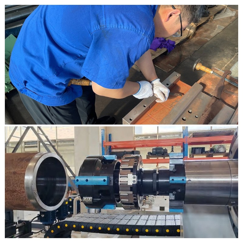 2) Η τροφοδοσία του σιδηροτροχίου υπό πίεση τροφοδοτείται από ένα ελεγκτικό κινητήρα και μια τραπεζοειδή βίδα, με κίνηση 2500 mm.η μέθοδος κλεισίματος μεταξύ του συρόμενου τραπεζιού και της σιδηροτροχιάς καθοδήγησης είναι η υδραυλική ρύθμιση.